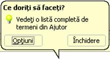 Se afiseaza Asistentul Office impreuna cu o caseta care indica spre o lista completa de termeni din Ajutor.