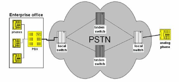 Daca vrem sa conectam un aparat telefonic in casa sau la sediul unei firme, cu centrala PSTN, primul punct de intrare este un comutator numit comutator local-"local switch".Acest tip de comutator este denumit si Comutator de CLASA 5.Comutatorul local este administrat de compania telefonica locala, care deseori este mentionata drept LEC "Local Exchange Carrier".Comutatorul local preia semnalul analog de la intrare il digitalizeaza pentru a putea fi transmis direct in centrul centalei PSTN.Convorbirea digitalizata este transmisa prin liniile principale catre urmatorul comutator din retea.