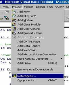 Creez o noua aplicatie Visual Basic (de tip "Standard EXE", apoi setez referintele la aplicatia AutoCAD (vezi. Pt. 5). Aplicatia are implicit o forma pe care o voi folosi la specificarea datelor necesare aplicatiei.
