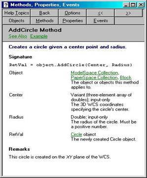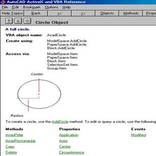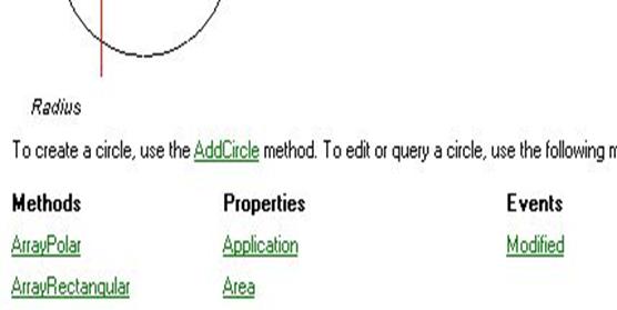Metodele , proprietatile si evenimentele obiectelor (de ex. pt. AcadCircle):