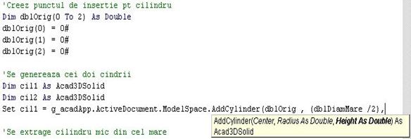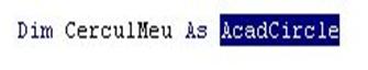 Pentru generarea unui obiect de tip cerc , daca aplicatia a fost deschisa cu functia OpenAcad fiind definita ca variabila globala in modul cu Public g_acadApp As AcadApplication atunci pentru adaugarea unui cerc in modul :