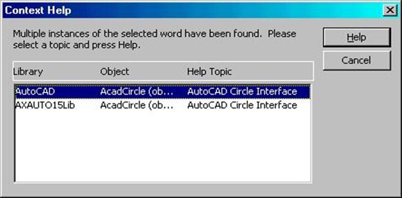 La accesarea help-ului pentru o operatie concreta se utilizeaza tasta F1 dupa selectarea obiectului. De exemplu, vreau sa desenez un cerc si nu stiu ce metoda trebuie sa folosesc si a carui obiect. Declar obiectul cerc cu :