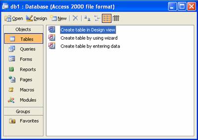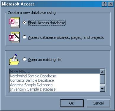 Fereastra Microsoft Access pune la dispozitie urmatoarele optiuni: