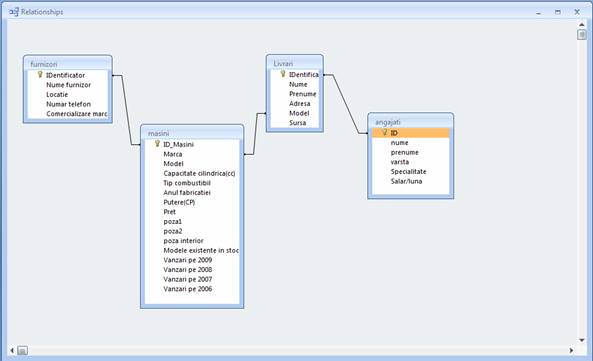 intre tabelele 'masini' si 'livrari' relatie de tipul 'unul-la-infinit'