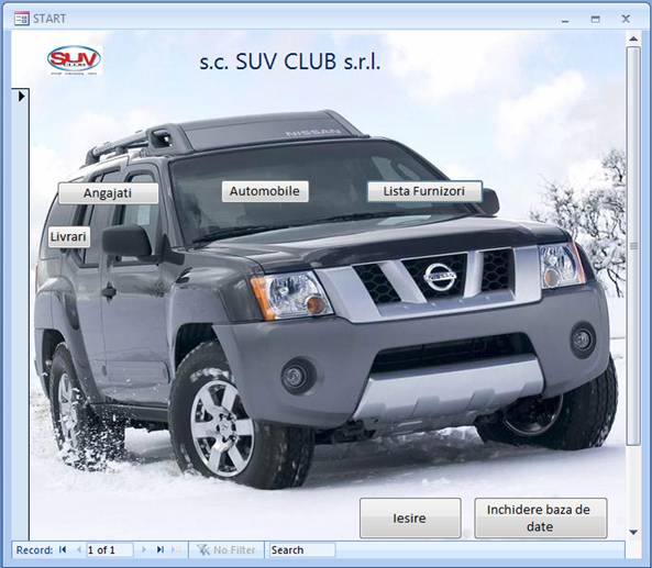 Definirea problemei:Aceasta baza de date are ca si scop evidenta Suv-urilor din cadrul unei firme de dimensiuni medii al carui profil este vanzarea autovehiculelor de teren.