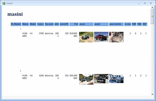 -in tabelul Masini s-au introdus 11 entitati :