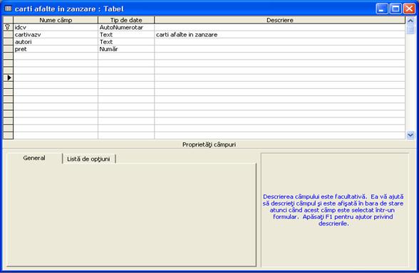 "Carti"-deschide tabela principala.