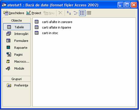 Sunt realizate tabele doar la formularele ce contin toate datele despre carti si anume : "Carti aflate in vanzare"," Carti aflate in tiparire", "Carti in stoc ".Folosesc in cazul in care se doreste tiparirea unei anumite liste de carti din formularul respectiv.