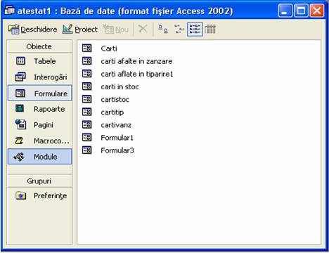 "Cartivanz ","cartitip" si "cartistoc "-reprezinta formularele interogarilor realizate.