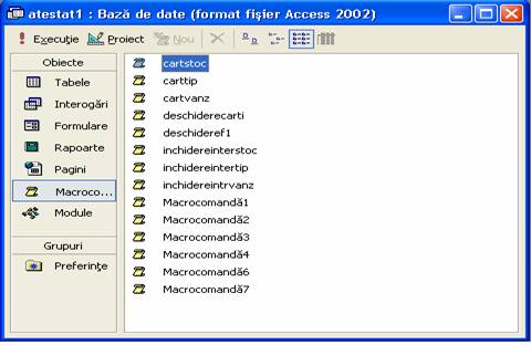 Macrocomenzile, in numar de 14 servesc la deschiderea sau inchiderea formularelor de carti.