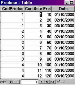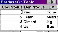 DBEngine.Workspaces(0).Databases(0).TableDefs!Miscare.Fields(0).NAME - se refera la numele primului câmp al tabelei descrise mai sus, 'MISCARE'. Aceasta este în exemplul dat 'CodProdus'.