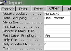 Page Header, Page Footer – Specifica daca se doreste ca aceste sectiuni sa apara sau nu alaturi de Report Header, Report Footer.