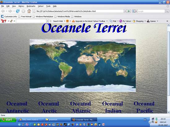 Butonul doi, denumit "Oceanul Arctic", incarca pagina cu informatii despre Oceanul Arctic.
