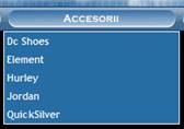 Submeniurile sunt in numar de 16 si sunt pe un fundal albastru cu chenar alb. Paginile care prezinta submeniu sunt: Incaltaminte, Imbracaminte si Accesorii.
