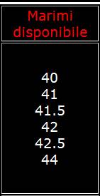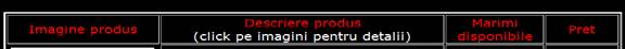 In sectiunea Marimi disponibile sunt prezentare pentru fiecare produs in parte (acolo unde este cazul) marimile pe care firma le are disponibile.