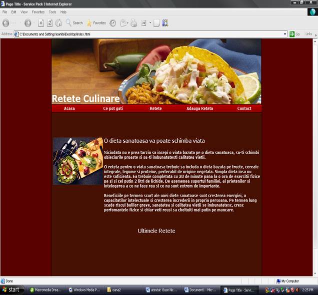 Pagina de index contine o structura de baza ce se pastreaza si la celelalte pagini de legatura.
