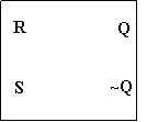 Simbolul de reprezentare in schemele logice ale circuitelor de calcul mai complexe, in care RS-ul este un element component, este un patrat cu 2 intrari (R si S) si 2 iesiri (Q si ~Q) astfel: