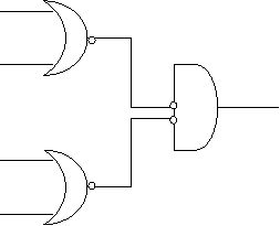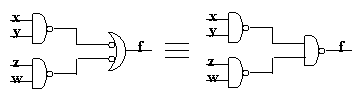 Folosind inca o data deMorgan se obtine functia care permite implementarea numai cu AND-uri si NON-uri:
