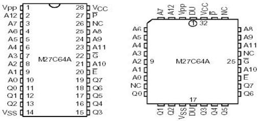 2764A este o memorie NMOS de 64 kbiti organizata ca 8 k cuvinte de 8 biti, oferita de o serie de producatori. Dispunerea pinilor este prezentata in figura 26, iar aspectul capsulei in figura 13.