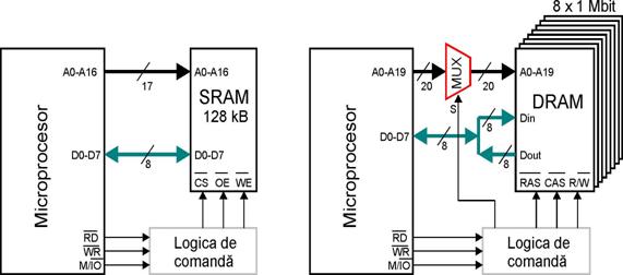 -memorii de date. In general memoriile ROM sunt folosite pentru stocarea programelor iar memoriile RAM a datelor.