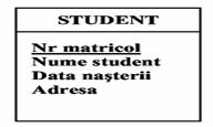 Tipul de entitate 'Student' desemneaza ansamblul studentilor caracterizati prin aceleasi trasaturi comune: numar matricol, nume, data-nasterii, localitatea, facultatea, specializarea etc.