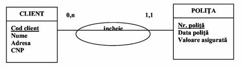 Exemplu. Exista clienti potentiali ai unei firme carora inca nu li s-au incheiat polite de asigurare - cardinalitate minimala 0, dar sunt clienti carora li s-au incheiat mai multe polite - cardinalitate maximala n.
