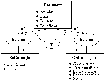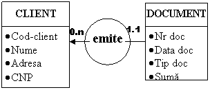 Exemplu. Un client (Figura 2.11). poate emite 0 sau mai multe documente de plata. Deci cardinalitatea dintre entitatea client si asocierea emite este