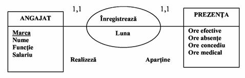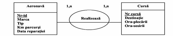 Reprezentarea sincronica din figura 2.46 evidentiaza ce curse au fost realizate de fiecare aeronava din dotare dar nu si cand. Cursa cu numarul 123 avand destinatia Paris se efectueaza in fiecare zi de joi a saptamanii si deci nu putem identifica cu ce aeronava s-a realizat intr-o numita zi. Daca insa dorim sa avem o evidenta clara a curselor realizate de o anumita aeronava aceasta reprezentare se dovedeste neacoperitoare. Realizarile tipului de asociere se identifica dupa Nr-ID si Nr cursa. Cum acelasi avion poate realiza aceeasi cursa, de mai multe ori identificarea realizarilor tipului de asociere nu se mai poate realiza. Acest lucru impune introducerea in cadrul modelului a unui tip de entitate temporala.