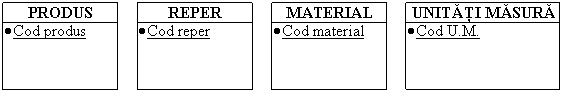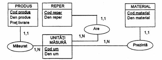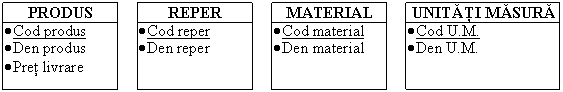 Tipul de entitate 'Produs' desemneaza ansamblul produselor aflate in catalogul firmei, produse descrise plecand de la aceleasi caracteristici comune: codul produsului, denumirea, unitatea de masura, data omologarii, procent TVA.