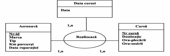 Observam ca introducerea timpului de entitate temporala a condus la transformatea tipului de asociere binara existent initial intre AVION si CURSA intr-o asociere ternara.