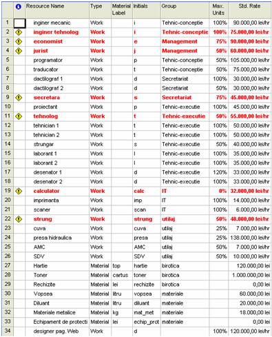 cazul proiectului analizat, se poate vedea in figura 3.2 ca unele resurse sunt