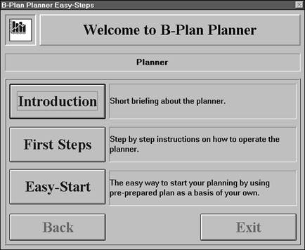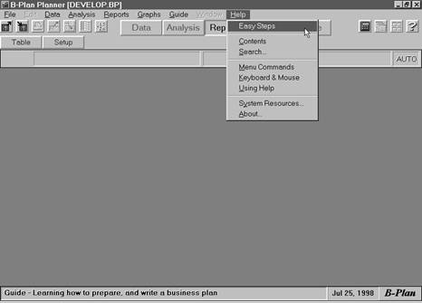 Din meniul Help selectati Easy-Steps pentru a afla pas cu pas cum sa folositi programul B-Plan.