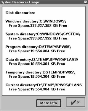 Apasand butonul More Info, va apare o alta fereastra cu informatii care precizeaza diferitele directoare folosite si spatiul liber pe disc la fiecare dintre acestea.