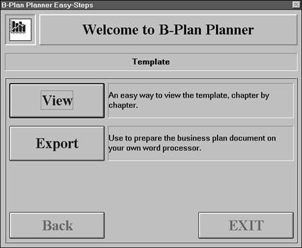 Selectati Export pentru a exporta macheta catre un procesor de texte in care scrieti planul Dvs. de afaceri. Vi se va cere un nume pentru fisierul sablon. Ar trebui sa selectati o extensie de fisier compatibila cu formatul de sablon pe care doriti sa-l folositi. Selectati OK pentru a activa procesorul Dvs. de texte cu fisierul sablon cerut.