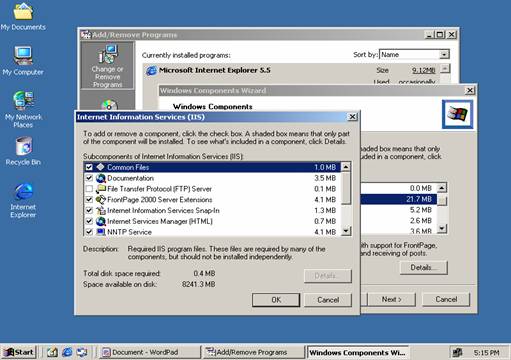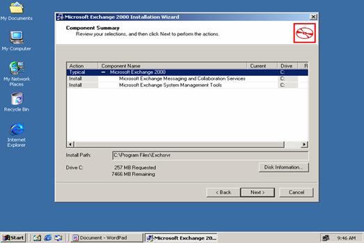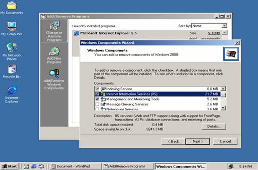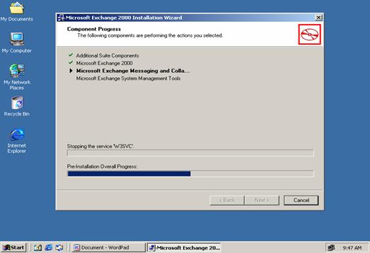 Aceasta componenta se putea alege si in faza de preinstalare a Windows 2000 Server din componentele IIS dar ceea ce este mai important este faptul ca instalarea de Exchange 2000 nu ar fi inceput si am fi avut parte de un mesaj de avertizare,care ne cerea express instalarea acestui serviciu,dupa care meniul de Exchange Setup s-ar fi intrerupt.