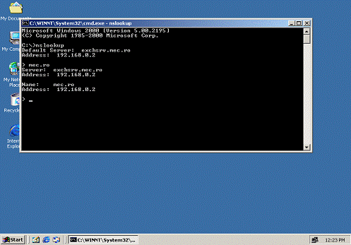 2)Din fereastra de 'Command Promt' editam:'Nslookup' dupa care 'MEC.RO' adica numele domeniului nostru.