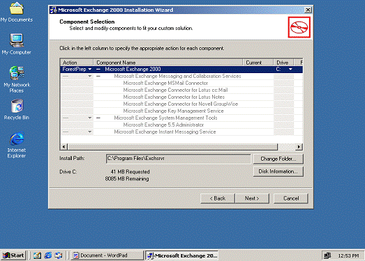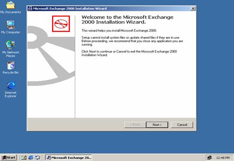 Exchange 2000 necesita un Windows 2000 Server cu Active Directory intr-un domeniu Windows 2000. Odata instalat serviciul de NNTP se poate trece la promovarea sever-ului de W2000 Server,care trebuie sa aiba pus ultimul SP, la DC pentru a avea disponibila structura de Active Directory necesara pentru instalarea Exchange 2000 Server,astfel: