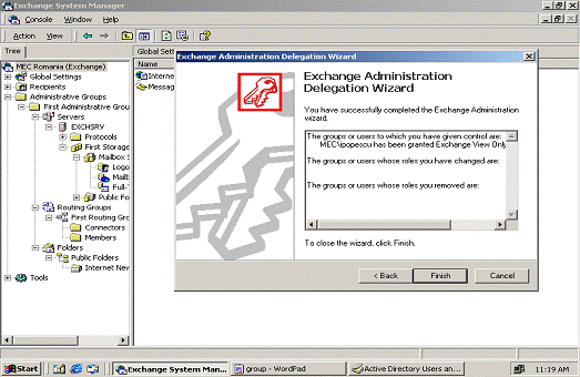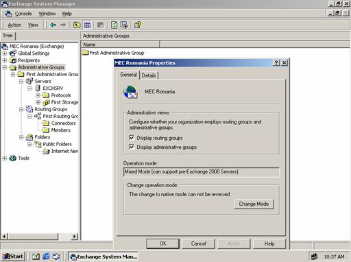 Avantajele acestei operatiuni sunt:crearea unui grup 'Exchange Domain Servers' ce contine toate calculatoarele ce ruleaza cu Exchange 2000 din domeniu,crearea unui grup 'Exchange Enterprise Servers' ce contine toate calculatoarele cu Exchange 2000 din forest,se pot da permisiuni de control pe cele 2 grupuri.