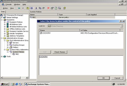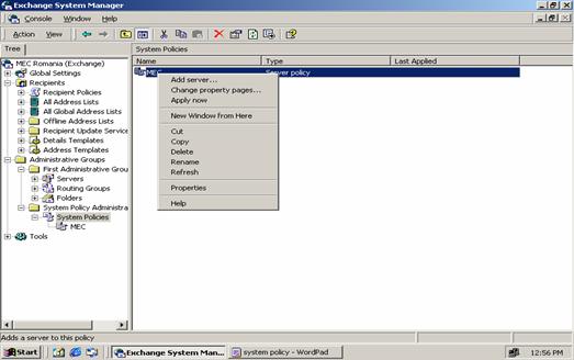 2.3) Folosirea Exchange 2000 SystemPolicy.