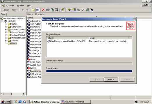 Ultimul pas consta in instalarea si configurarea clientilor de e-mail pe PC-urile acestora folosind clientul de Exchange din programul Microsoft Outlook.