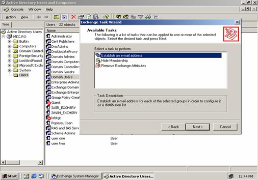 2.4) Administrarea listelor de addrese in Exchange 2000.