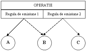 Diferitele reguli de emisiune sunt reprezentate in partea inferioara a dreptunghiului ce descrie operatia, iar reprezentarea este analoaga unei formulari de genul: