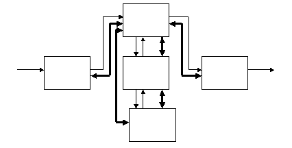 Prin rafinari succesive ale acestui model foarte general se pot obtine modele functionale sau constructive cu diferite grade de detaliere. Sistemul are un set de terminale de intrare 'I' si un set de terminale de iesire 'E'.