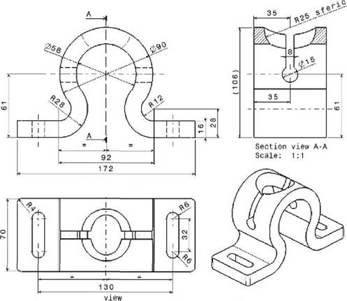 Fig. 3.157. Desenul de executie al unui corp de robinet