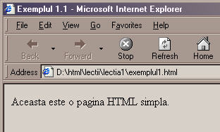 <HTML> <HEAD> <TITLE>Exemplul 1.1</TITLE> </HEAD> <BODY> Aceasta este o pagina HTML simpla. </BODY> </HTML> |