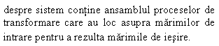 Convenim sa reprezentam un sistem printr-un bloc si sageti, unde sagetile corespund marimilor de intrare si de iesire, iar blocul in care se noteaza numele sistemului sau informatii