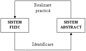 Relatia dintre un sistem fizic si unul abstract se poate caracteriza prin notiunile la care se refera figura 4: