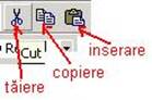 Aceste comenzi sunt disponibile si de la tastatura prin combinatiile Ctrl+X pentru decupare, Ctrl+C pentru copiere si Ctrl+V pentru inserare. La primul pas se selecteaza zona de text sau obiectul la care sa se refere comanda. Prin decupare se sterge obiectul selectat din locul initial si se pastreaza in Clipboard, de unde poate fi inserat in locul dorit. Prin copiere obiectul selectat ramane si in locul initial. La fel se pot folosi ramurile Cut, Copy si Paste din meniul Edit.