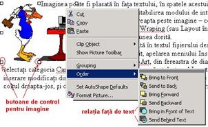 Prin selectarea obiectului si apasarea butonului din dreapta am acces la meniul contextual, unde am principalele comenzi de editare, pot sa fac copiere, decupare,inserare etc.