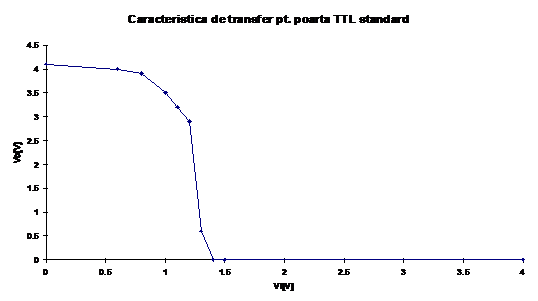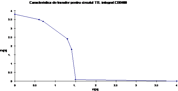 Determinarea caracteristicii de transfer VO=VO( VI ). Vom considera la intrare tensiuni VI cuprinse in plaja 0..4V. Daca se dispune de o poarta cu mai multe intrari, celelalte se vor conecta la "1" logic (+4V).